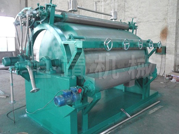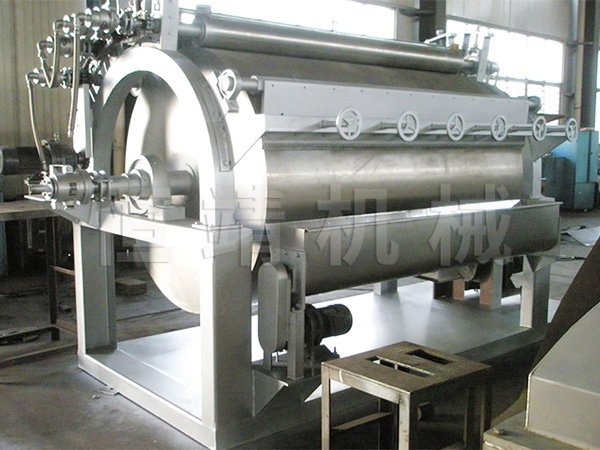 3、干燥时间短。物料的干燥周期一般只有10-300秒,在适合于热敏性物料。若将滚筒干燥机设置在真空器中,则可在减压条件下运行。